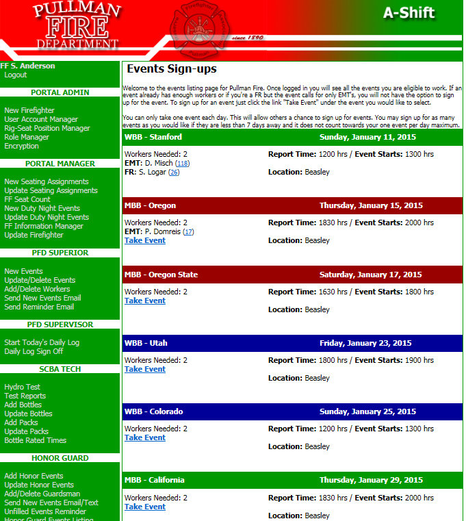 is a fair and equitable way for members to sign up for off-duty events. The website ensures the worker has the required skill set as specified by the event organizer or it will not allow the member to sign up. Each member may only sign up for one event within a specified period of time to ensure all members have had an opportunity to sign up for events.